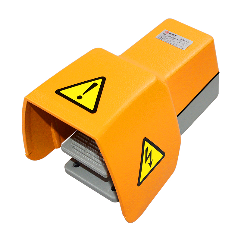 DHF-1RNXY11脚踏开关,三面防护罩,铸铝材质,加厚踩踏板,坚固耐用。适用于数控锻压机械设备电路信号通断控制。额定绝缘电压380伏,发热电流15安培,工作电压电流交流250伏、15安培,防护等级IP60。